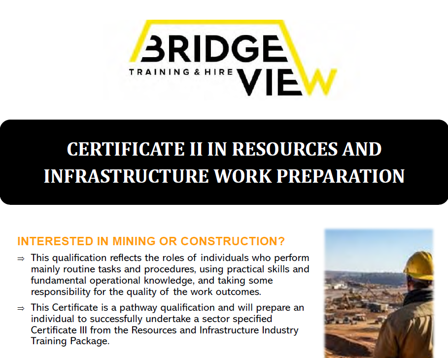 Download the Course Flyer for RII20120 Certificate II in Resources & Infrastructure Work Preparation